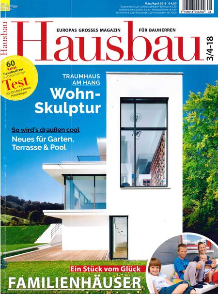 Das Wohnhaus Appel mit großflächigem Büro im Untergeschoss wurde in der Fachzeitschrift „Hausbau“ in der Ausgabe 3/4-18 veröffentlicht. Mit üppigem Garten, der 100m² großen Terrasse und der winkligen Aufteilung in Gemeinschafts- und Rückzugsbereich vereint Familie und Beruf und passt es perfekt zu dem Titelthema „Familienhäuser“. Den gesamten Artikel finden Sie nachfolgend: